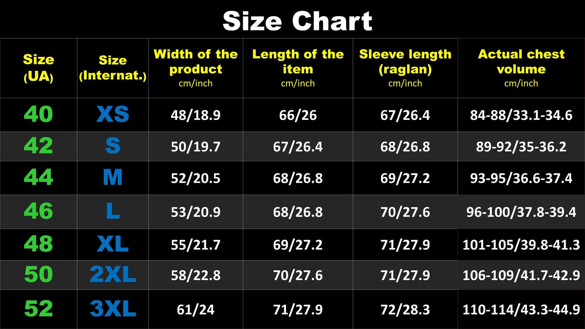 • Available sizes: S–XXL